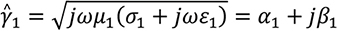 where the propagation constant and the intrinsic impedance in medium 1 are given by