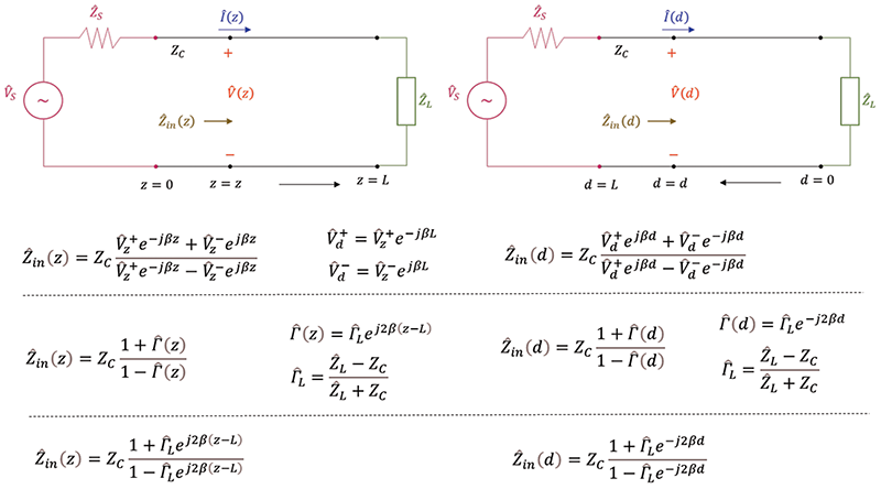 In [1] the voltage and current at any location z away from the source were derived as