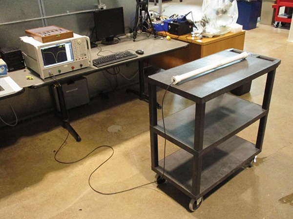 To limit the common mode current on the antenna feedline, three ferrite chokes were placed on the antennas feedline as shown in Figure 11. The sleeve dipoles reflection coefficient (S11 parameter magnitude) was measured using a vector network analyzer in the setup shown in Figure 12.