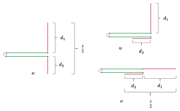 We can reduce the input impedance of a dipole by moving the fed point off-center, this is shown in Figure 2 (a). The creation of a sleeve, shown in Figure 2 (b-c) can increase the bandwidth up to more than an octave and fine-tune the input impedance [2].