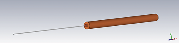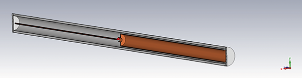 A 3D model of a sleeve dipole was drawn in CST Microwave Studio [3]. Electrical material properties were assigned. Images of the antenna used in simulations are shown in Figures 4 and 5.