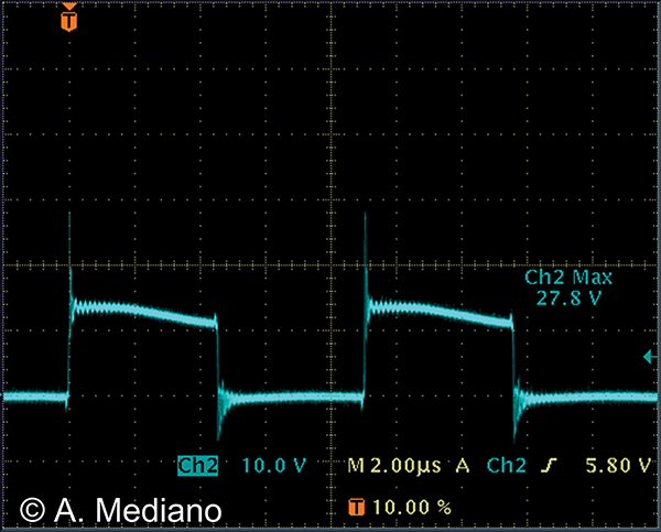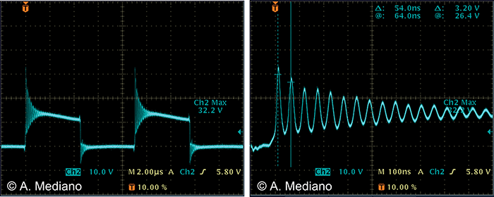 The waveform in the transistor (drain-source) was measured with a x10 passive probe (Figure 2).