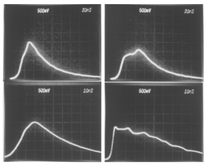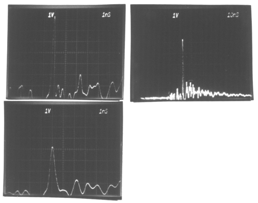 - The spectral bandwidths of ESD resulting from higher initialization levels (>10 kV, <20 kV) ranged in the tens to hundreds of megahertz, with risetimes in the order of 4 nanoseconds to several tens of nanoseconds (See Figure 2). The spectral bandwidths of ESD initialization levels between these two extremes were found to range in between, with risetimes in the one to ten nanosecond range(See Figure 3);