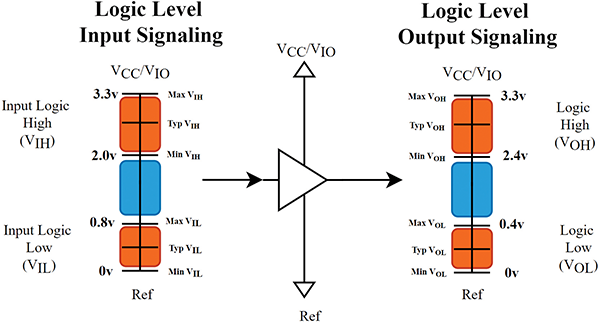 Figure 2 illustrates typical 3.3v CMOS TTL gate-level input and output signaling.