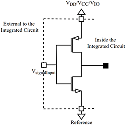 To assess how these logic levels impact noise tolerance, we must first investigate the structure of an input buffer representative of a standard CMOS input to an ASIC.