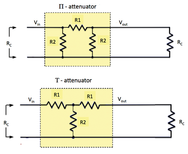 T-circuit: R1 = RC (1 – α) / (1 + α), R2 = RC • 2α /(1 – α2)