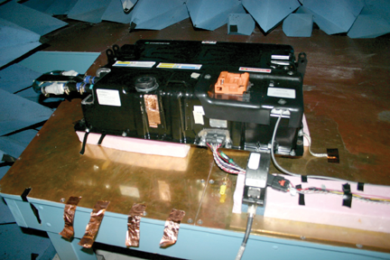 Figure 14: ESS (close-up) on a copper ground plane for CISPR25 radiated emissions/ISO 11452-2 radiated immunity testing
