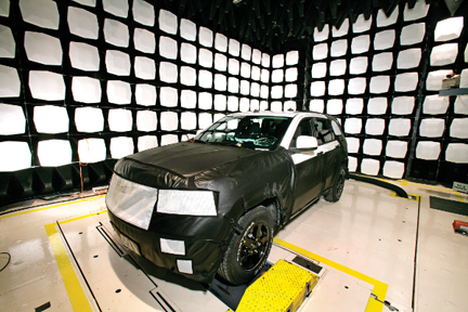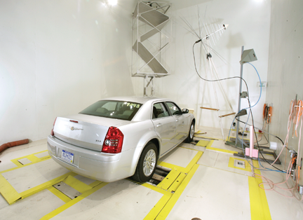 Figure 6: Vehicle in an anechoic chamber for RF emissions testing