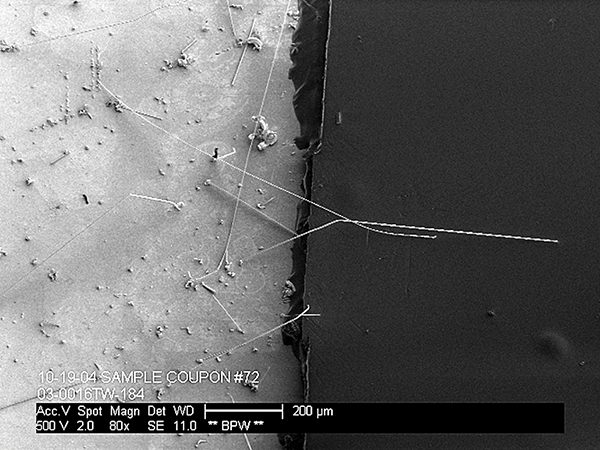 Tin whiskers are small, typically hair-like structures that can form naturally from the surface of tin components in electronic devices (Figure 1). Tin whisker formation is a well-documented phenomenon that has been studied for decades. Throughout this time, little consensus has been reached regarding the particular mechanisms behind tin whisker formation. Whisker formation is believed to be a diffusion-controlled process motivated by stresses, both internal and external; however, the wide range of factors that may produce material stresses makes it exceedingly difficult to identify or isolate individual factors.