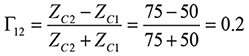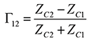 where Γ12 is the reflection coefficient for the wave incident from the left onto the boundary, given by