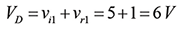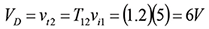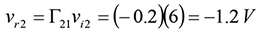 The reflected voltage at the load (6V) travels back towards the discontinuity where it gets reflected and transmitted. Let’s look at the reflected voltage first. The reflection coefficient (from the right) at the discontinuity is