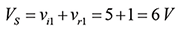 The reflected voltage wave propagates back towards the source and arrives there about at t = 2T later. The total voltage at the source becomes (after t = 2T+2tr).