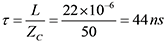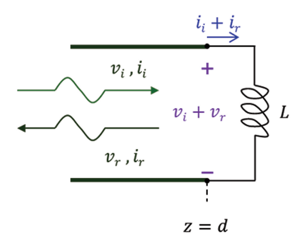 and travels towards the load. When this wave arrives at the load (after the time T; about 18 ns for a 12 ft RG58 cable), the inductor current cannot change instantaneously from zero to the value in Eq. (2b), Kirchhoff’s Current Law (KCL) is violated at z = d and thus the reflected wave, vr and ir is created [5]. This is shown in Figure 2.