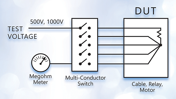 Insulation resistance testing is likely to be required in motor winding, transformer winding, and other applications involving cabling or insulated wire. Insulation resistance testing typically involves confirming that the resistance exceeds a defined high resistance value.